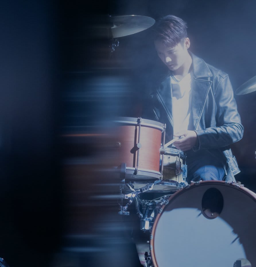 of his energy, conveyed through ripples of the sounds waves coming from his drum set.