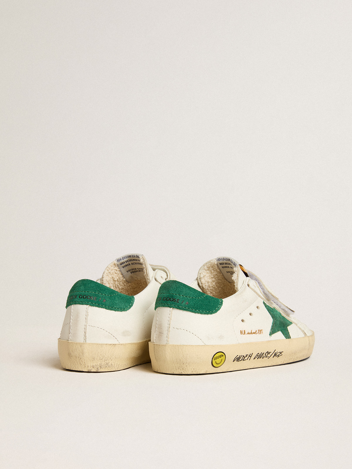 Create AccountOur Old School sneakers feature two Velcro straps on the front with contrasting logo. The Young version of this model in white leather features a green suede star and heel tab. The smiley detail and contrasting lettering on the foxing add the finishing touch.