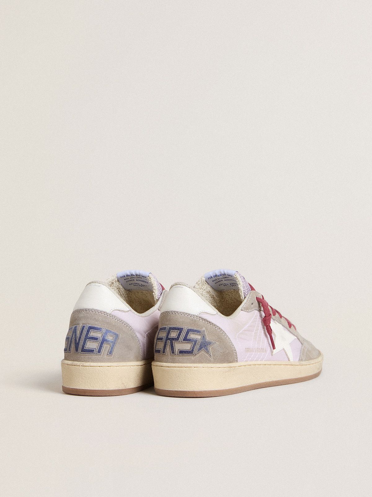 Dreaming of the Eighties. Our Ball Star sneakers have an American college vibe caught between a hoop shot and a skateboard ride. Crafted in lilac nylon, this model features a white leather star and heel tab, and dove-gray suede inserts. The purple mesh tongue and brick-red laces complete the look: beautiful things that never go out of fashion.