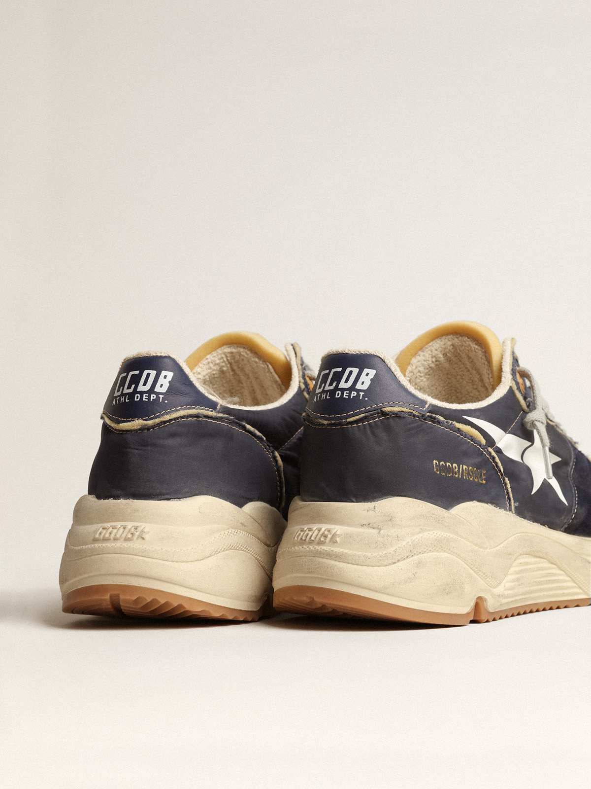 Créer un compteCes sneakers Running Sole allient allure urbaine et esprit artisanal : ce sont les compagnes idéales de vos aventures urbaines. Ce modèle en nylon bleu foncé orné de détails en caoutchouc mousse de couleur beige se distingue par une étoile imprimée blanche et par un contrefort en cuir bleu foncé. L’empiècement en daim bleu foncé et les lacets gris froid apportent la touche finale.