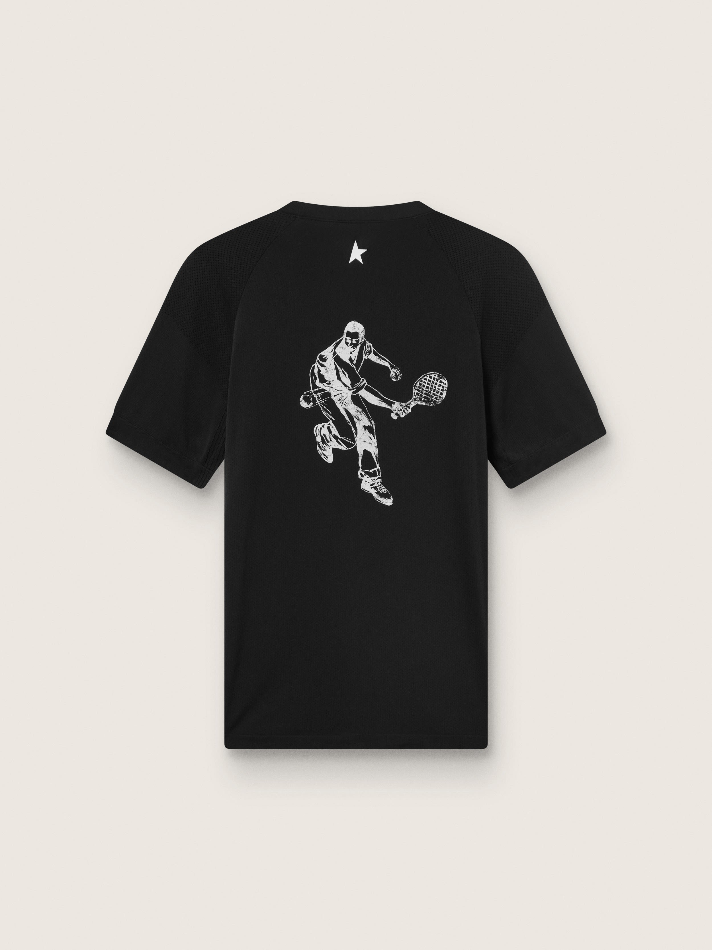 Crear cuentaUna colección con un alma informal, pero de actitud versátil: inspirada en los años setenta, emana un encanto vintage y atemporal perfecto en cualquier ocasión y con todos los looks. Esta camiseta deportiva de color negro y corte regular se caracteriza por las aplicaciones de malla en los hombros y las mangas, los detalles de malla laterales y el estampado blanco de un jugador de tenis en la espalda. Para completar su estilo, el logotipo Star blanco en contraste en el delantero y la estrella Golden en la espalda.