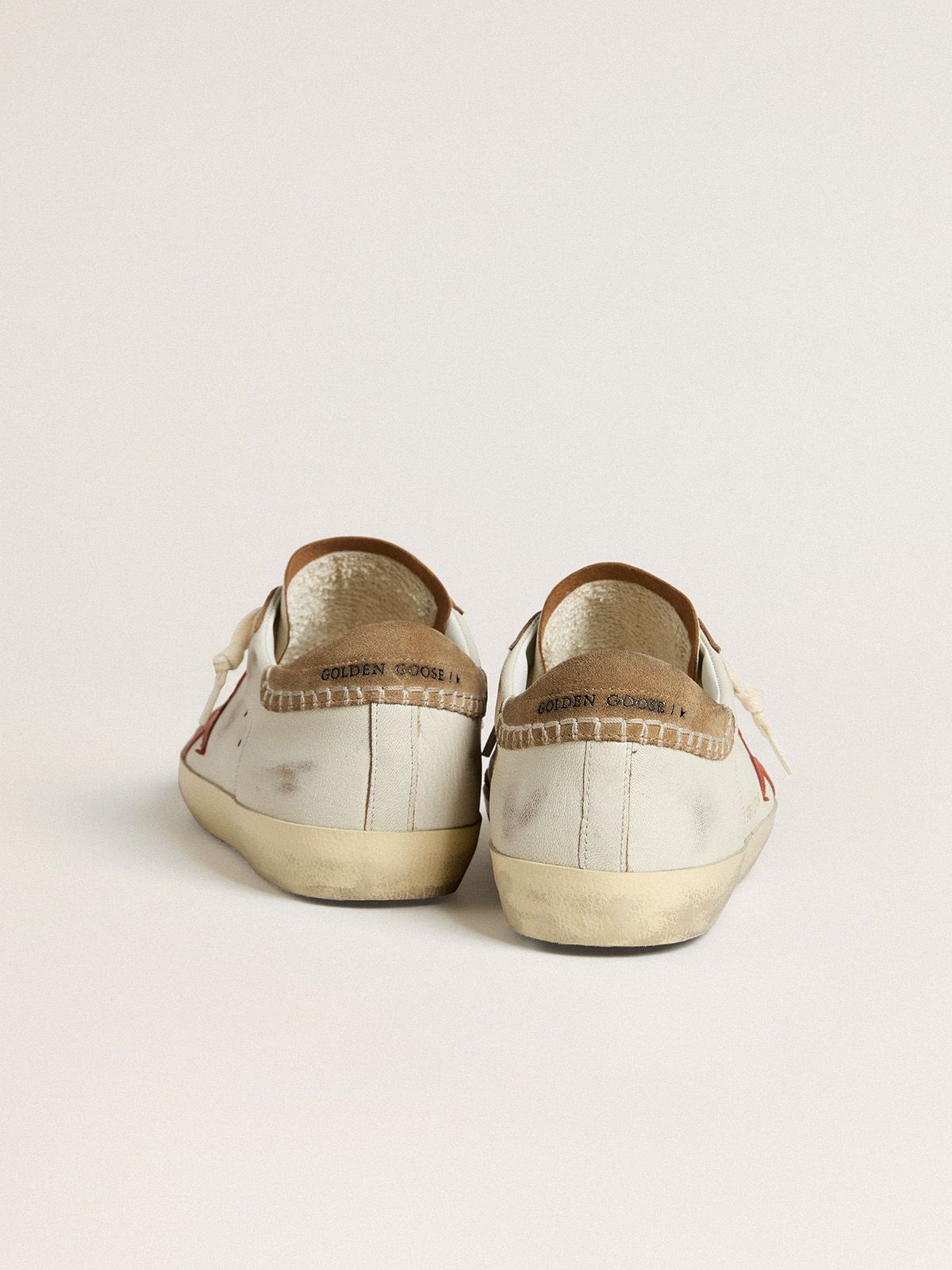 Un icono atemporal, pero en continua evolución. En Golden nos encanta reinterpretar nuestros clásicos constantemente, cada vez bajo una luz diferente. Estas Super-Star con pala de napa blanca se distinguen por su estrella de piel naranja y su refuerzo del talón de ante de color tabaco con bordados blancos. Y como toque final, los cordones blancos.