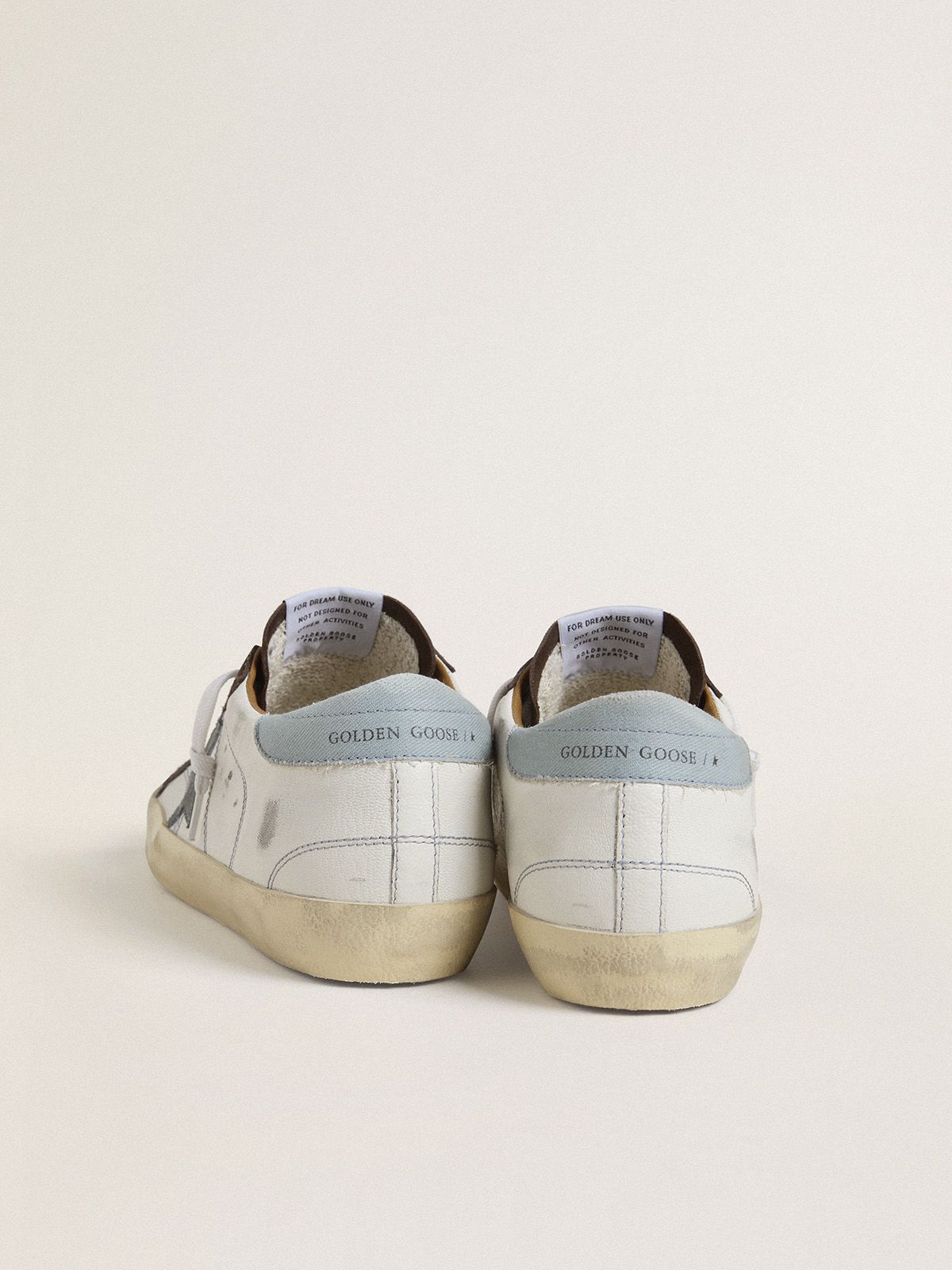 Un icono atemporal, pero en continua evolución. En Golden nos encanta reinterpretar nuestros clásicos constantemente, cada vez bajo una luz diferente. Estas Super-Star con pala de napa blanca se distinguen por su estrella de ante celeste y su refuerzo del talón de lona celeste. Y como toque final, la lengüeta de ante marrón y los cordones blancos.