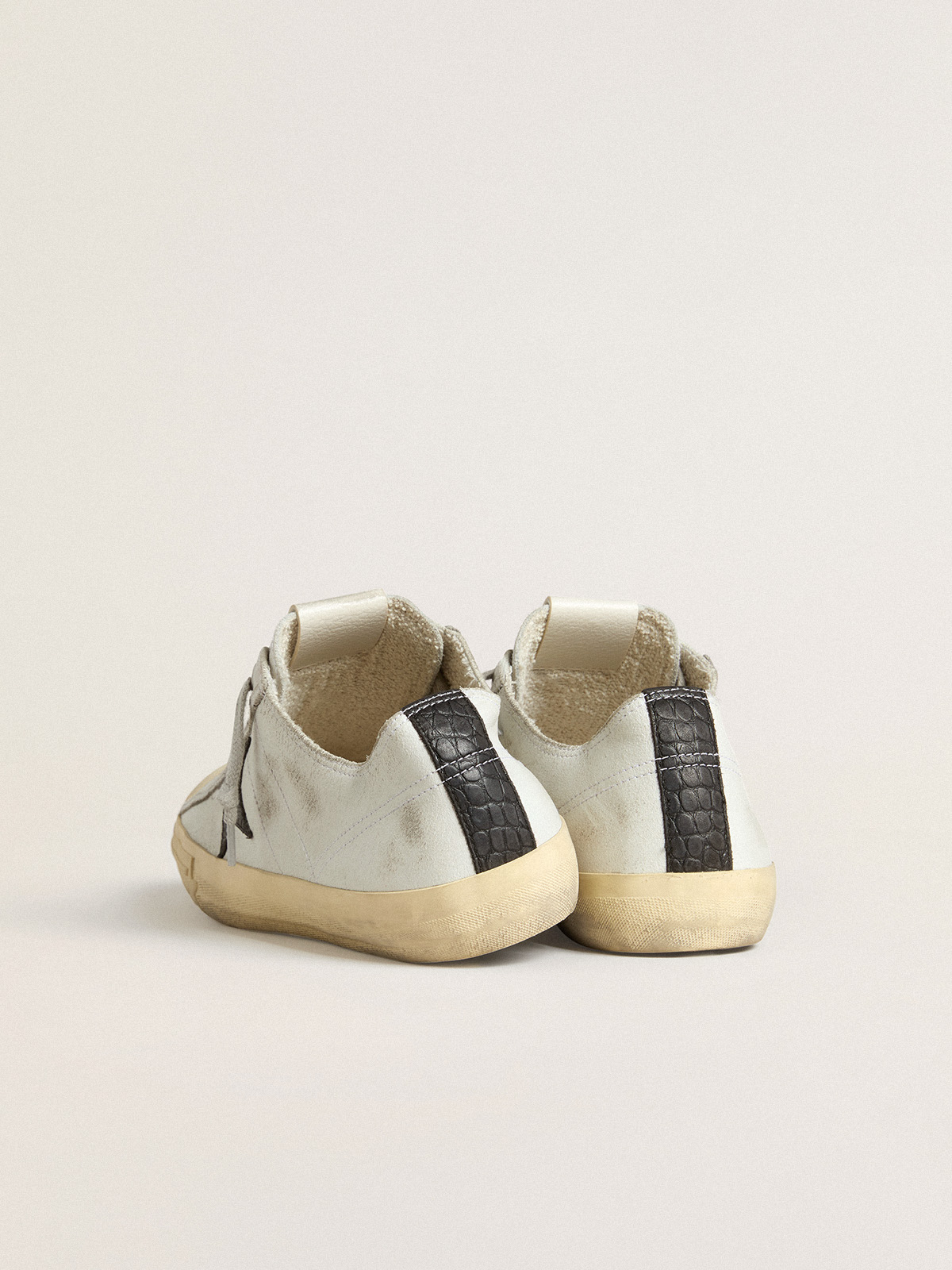 Crear cuentaLa belleza reside en la simplicidad: nuestras V-Star representan la unión entre una forma esencial y detalles de estilo. Este modelo con pala de piel blanca se caracteriza por su estrella y su refuerzo del talón de piel con estampado cocodrilo color negro. Y como toque final, la puntera de goma blanca y los cordones grises.