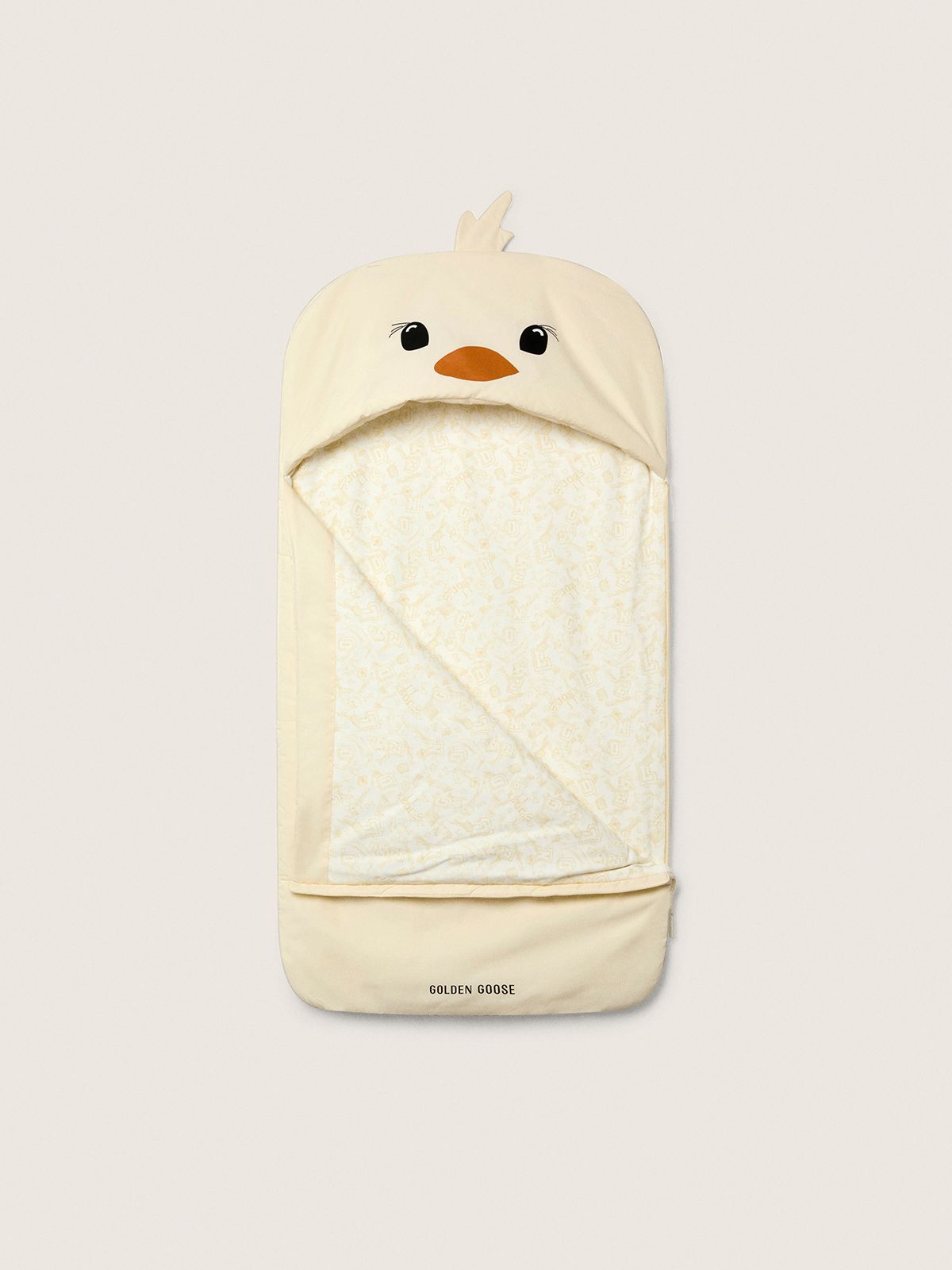 회원 가입밝은 날 그리고 잊을 수 없는 모험을 하는 등 모든 순간을 함께할 수 있도록 제작된 컬렉션입니다. 라이트 옐로우 나일론으로 제작한 병아리 모양의 이 소형 패디드 베이비 슬리핑 백은 화이트 앤 라이트 옐로우의 내부 마스코트 프린트와 앞면에 골든구스 로고 디테일 프린트가 특징입니다.