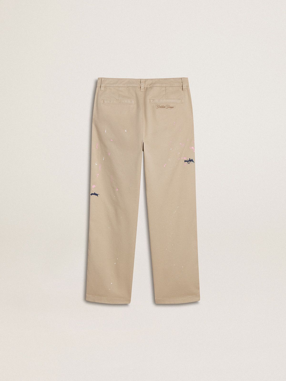 Créer un compteUne collection à l’esprit décontracté, mais à l’attitude polyvalente : inspirée des années 1970, elle affiche une allure vintage intemporelle, adaptée à toutes les occasions et à tous les looks. Caractérisé par une coupe regular, ce pantalon chino beige unisexe se distingue par des éclaboussures multicolores. La broderie griffée beige à l’arrière et les quatre poches apportent la touche finale.