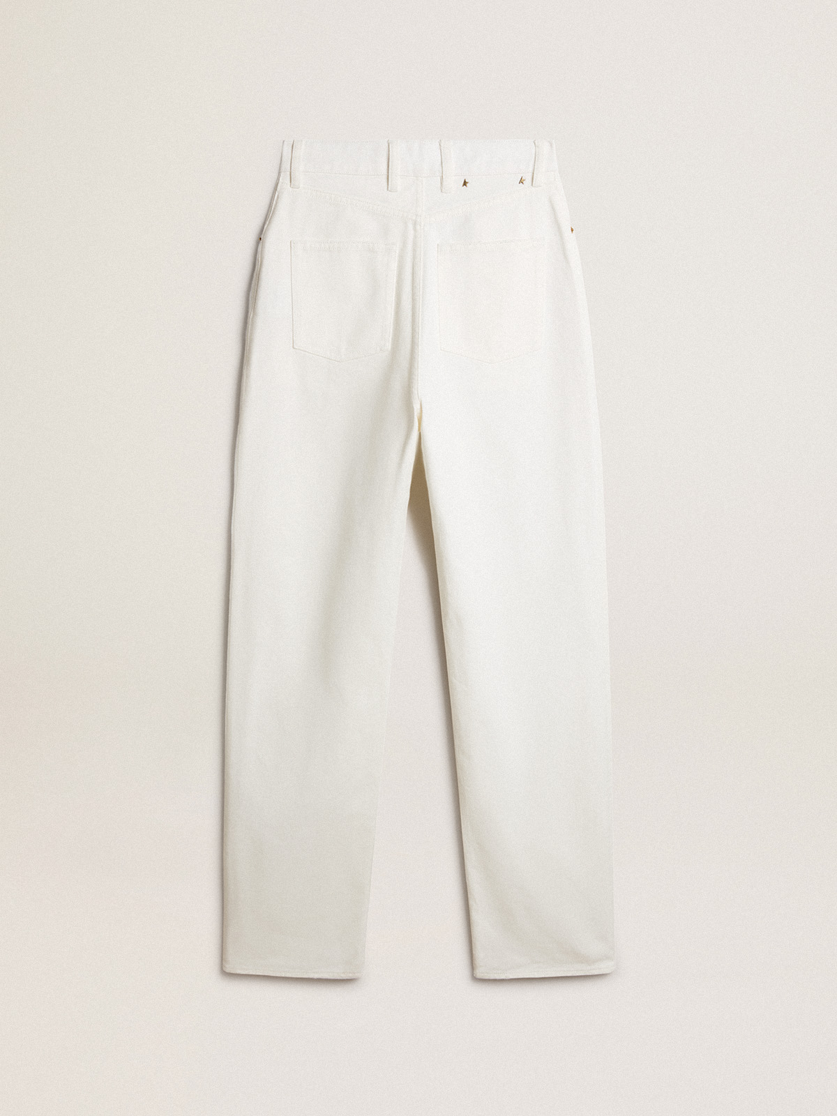 Create AccountA unique, timeless collection that encapsulates the Golden Goose DNA, designed to remain with you every day, through thick and thin, come rain or shine. These optical white cotton denim pants feature a regular leg.