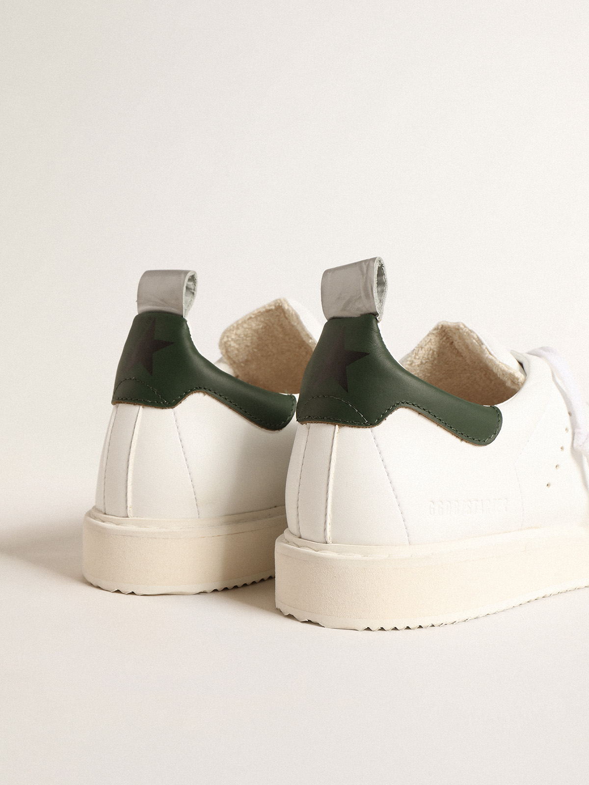 Create AccountEssential design and clean lines: our Starter sneakers are the most minimalist version in the Golden Goose world. This version with white bio-based upper features a green leather heel tab with gray leather loop. And white laces add the finishing touch.