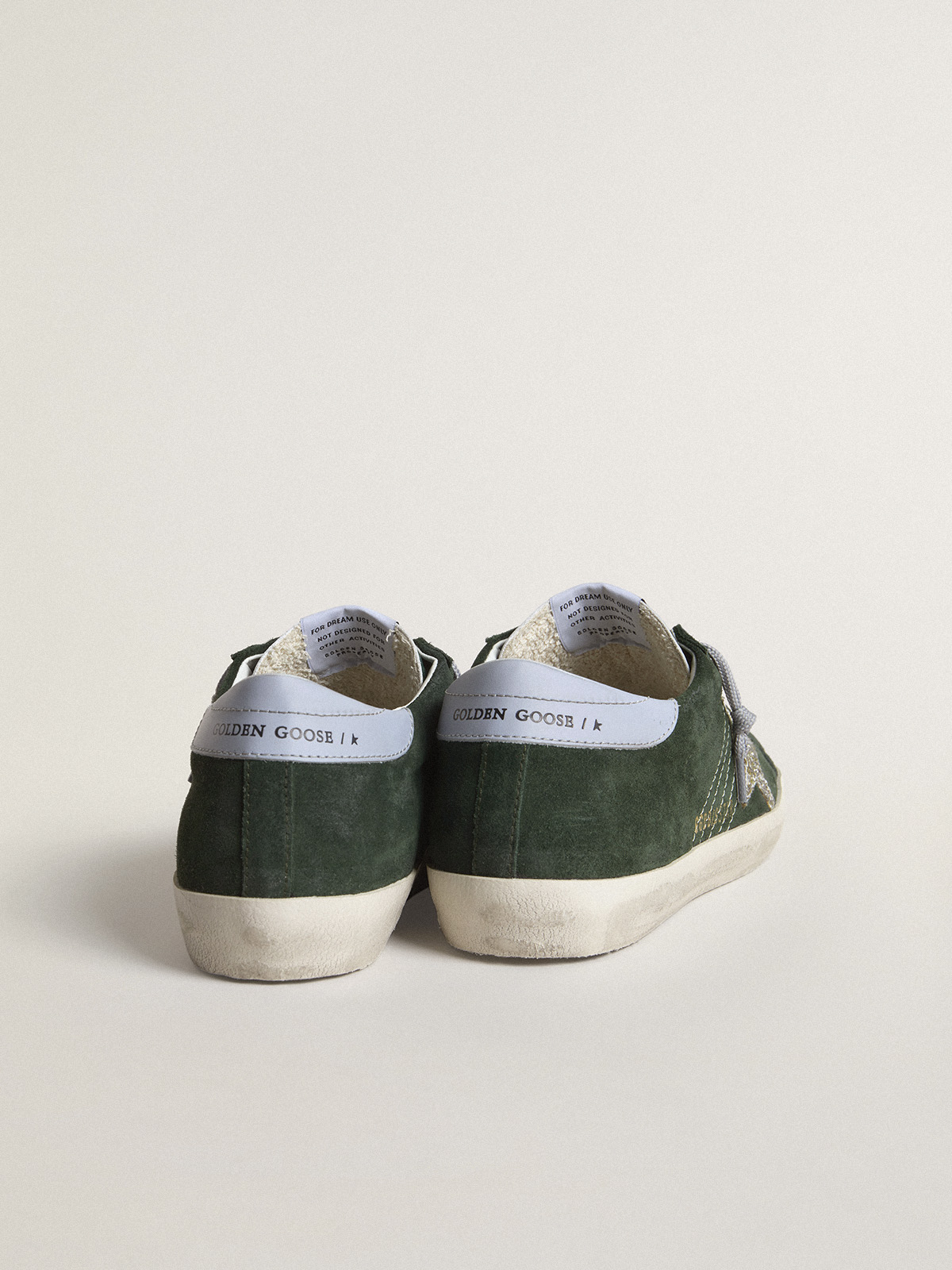 Create AccountA timeless icon yet one that’s constantly evolving. At Golden, we love taking our classics and reworking them all the time, always from a new angle. With a forest green suede upper, these women’s Super-Star feature a silver glitter star and ice-gray leather heel tab. Gray laces add the finishing touch.